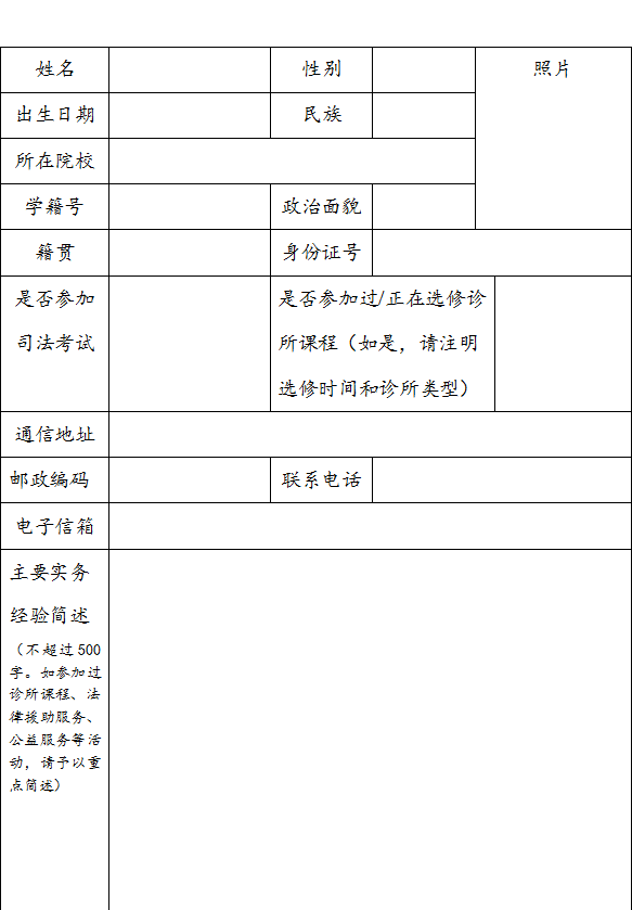“公益法律服务志愿者项目(2016-2017)”志愿者报名申请表