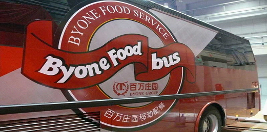 ↑百万庄园移动配餐车外观