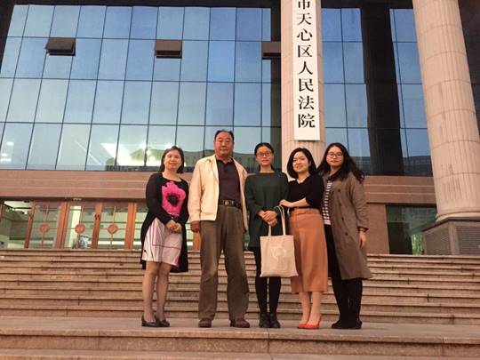力之下,各方就条款细则达成一致意见。最后,大家都在协议上签字确认,这个案子得到了圆满解决。司法局分管法律援助的崔局长和天心区法律援助中心的徐主任都非常重视这个案子,在调解结束之后亲自到法庭外探望当事人的女儿。