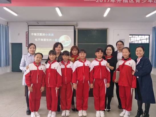 20171017日下午,在长沙市开福区街道和司法所的支持下,东风小学举办了首任校园法制教导员聘请仪式。湖南天恒健律师事务所李萍律师及廖细红律师受其邀请,和志愿者翁双杭一同参加了这一仪式。随后,李萍律师借此机会,为东风小学的同学们带来一场主题为“不做沉默的小羊羔,也不做嚣张的小霸王”的反校园欺凌专题讲座。