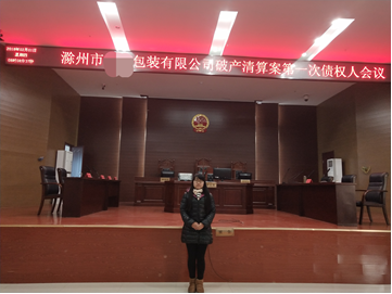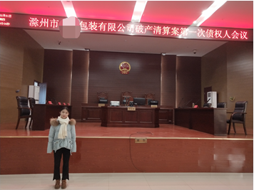 201821日,滁州市法律援助中心志愿者车蕊、段佳敏接受安徽苏滁律师事务所邀请,以律师助理身份列席滁州市某包装公司破产清算案第一次债权人会议。