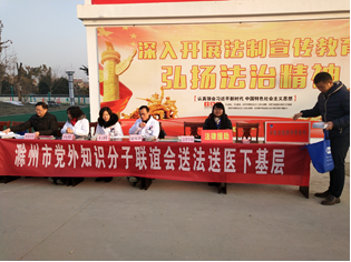 201827日,滁州市法律援助中心工作人员殷俊、志愿者车蕊,接受法律援助中心指派,跟随滁州市党外知识分子联谊会工作人员、安徽苏滁律师事务所李家顺、李悟非两位律师参加了滁州市珠龙镇“送法送医下基层”普法活动。