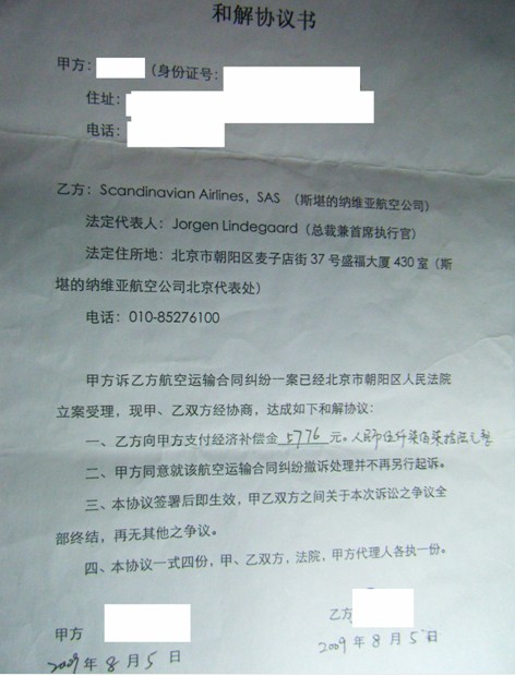 详细的查询相关公司的信息情况、寻找具有相关资质的翻译公司、取得相关文件的中文版本、多次与Scandinavian Airlines SAS公司的中国办事处交涉……经过多次努力,诊所的同学们最终完成了令当事人满意的和解协议。