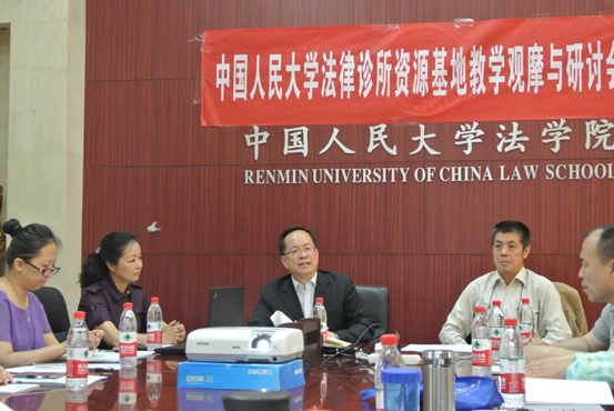龙翼飞教授首先向与会老师转达了中国人民大学法学院韩大元院长的问候,代表人大法学院欢迎老师们的到来。随后,龙教授介绍了全国法律诊所教育工作发展状况并指出,本届诊所法律教育专业委员会常务委员会的工作目标是推动中国诊所法律教育“入主流、高水平、国际化、有特色”。在这一努力中,法律诊所资源基地应当发挥示范性作用,“以点带面,点对应点,全面覆盖,各取所需”。龙教授诚恳地邀请与会诊所教师坦诚交流,分享经验,并在会后保持合作,让诊所教育更好地实现培养卓越法律人才的目标。